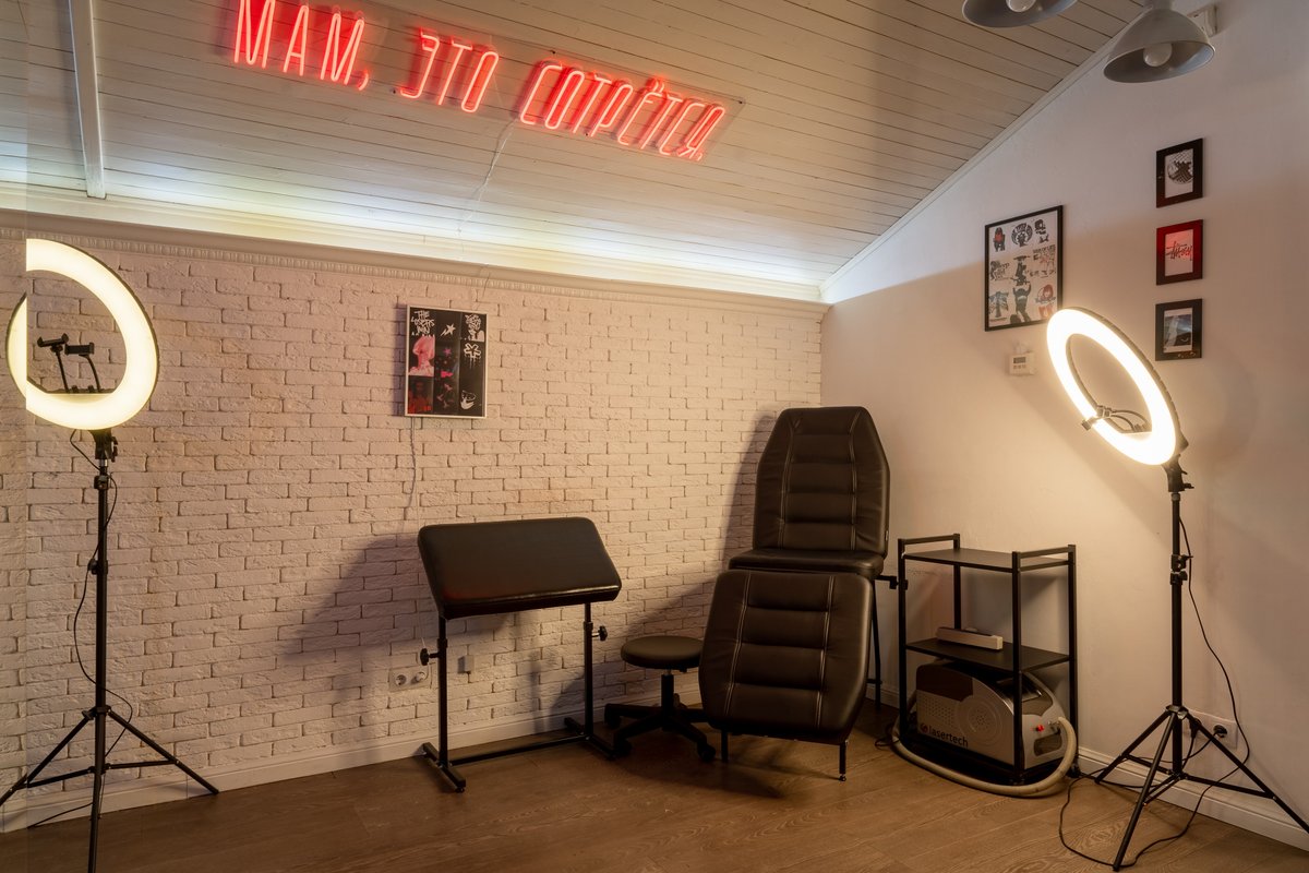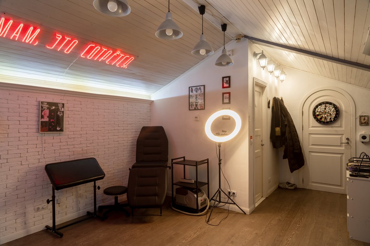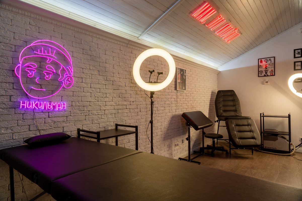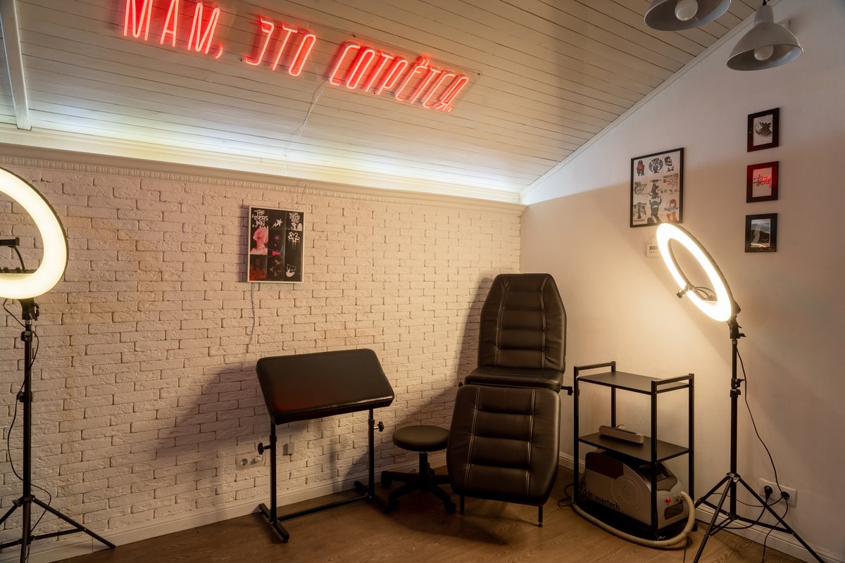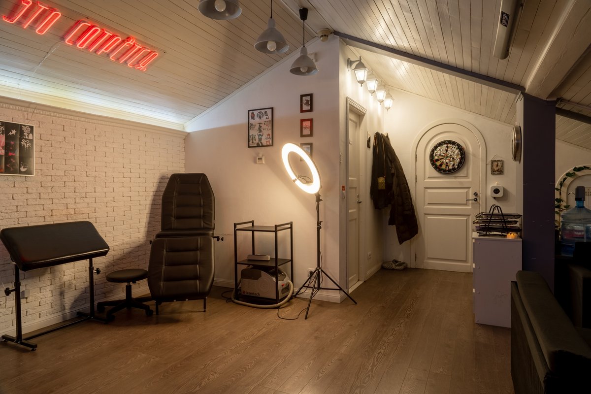 Преимущества: Удобное расположение, уютная атмосфера, наличие всех расходных материалов, термо-принтер, современное тату оборудование